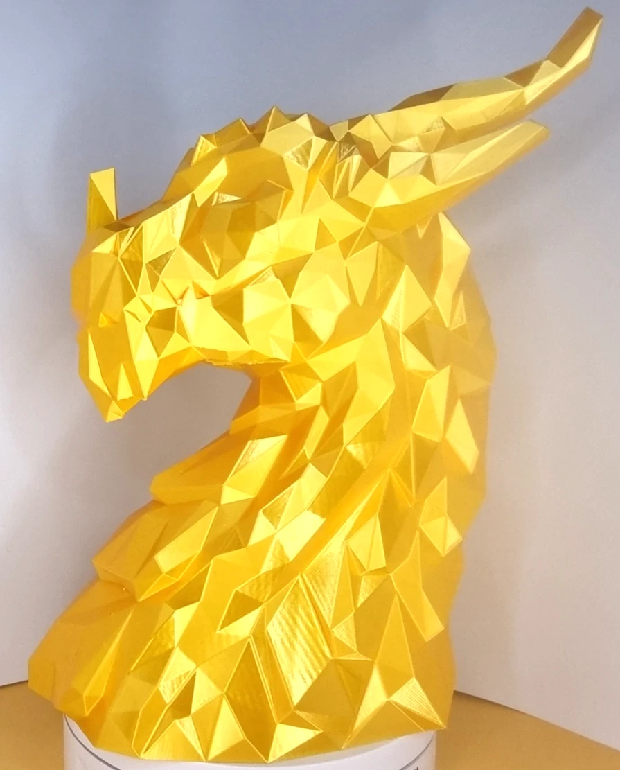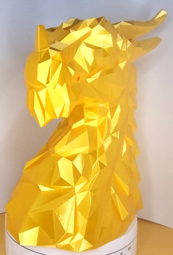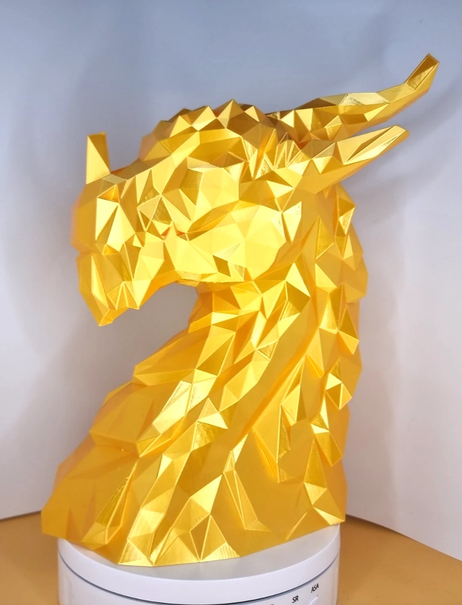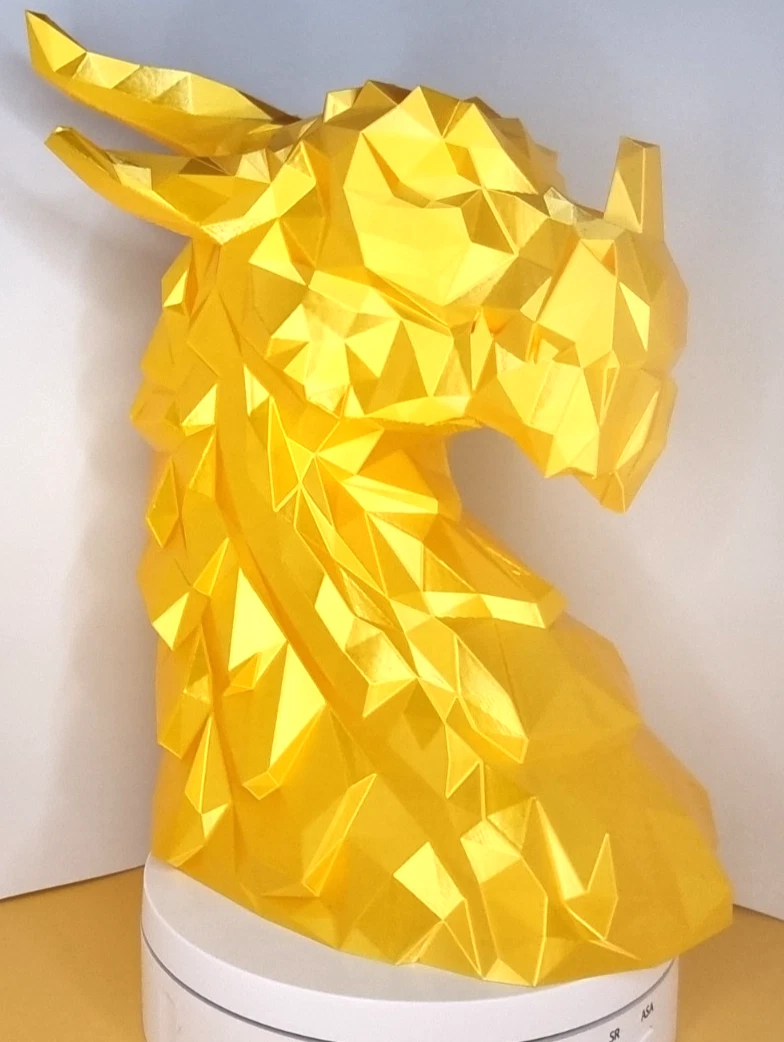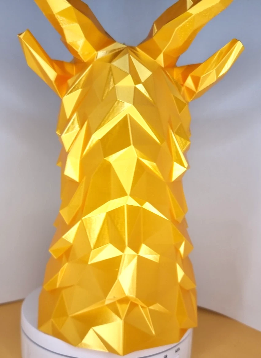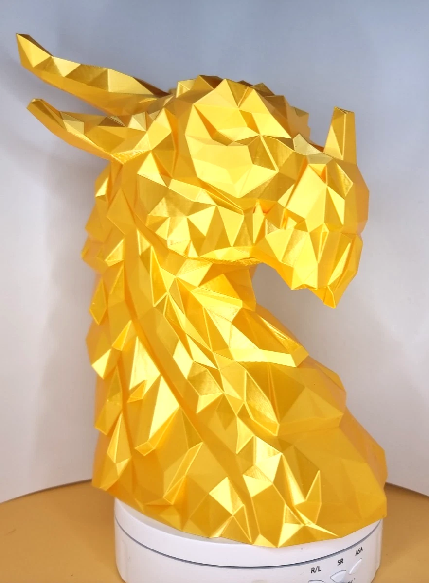 This Low Poly Dragon headset stand is the ideal place to rest your headset/headphones when not in use. It’s many surfaces catch the light from different angles and really make it stand out! The Gold colour means that the Dragon head looks different from different angles. This is truly a beautiful design.